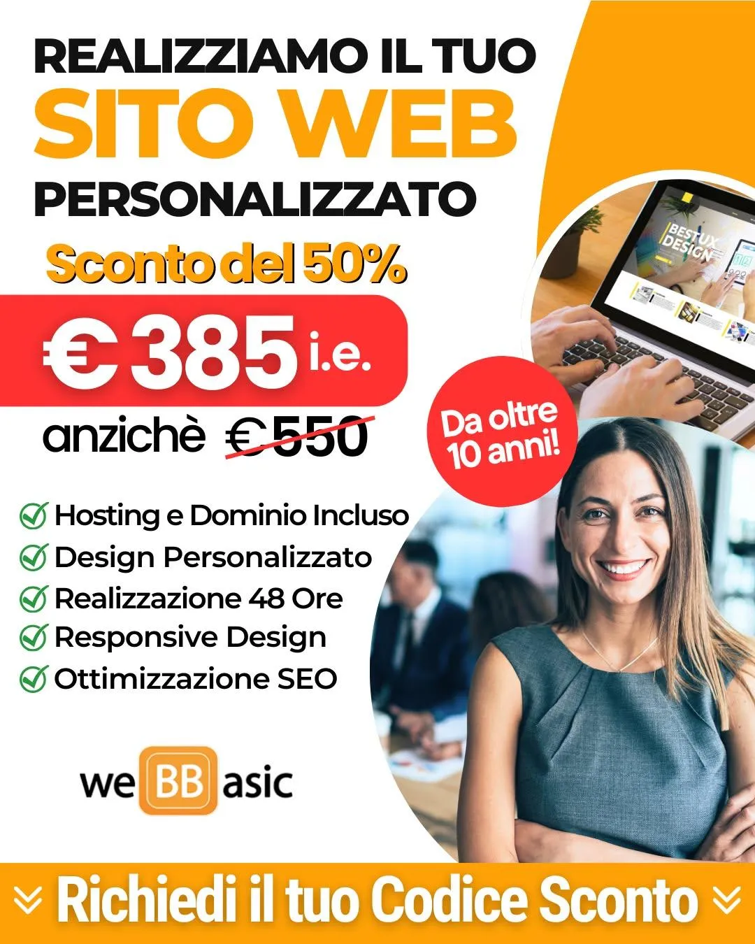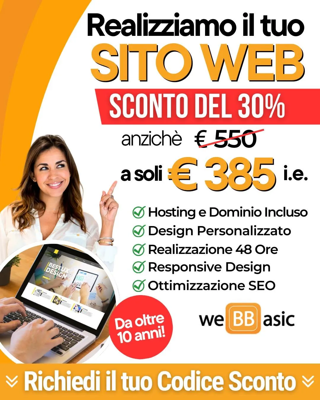 "Avevo preventivi esagerati per un sito web, poi ho scoperto WebBasic: con meno di 400€ ho ottenuto un sito professionale, ottimizzato per i motori di ricerca e con una grafica accattivante. Il miglior investimento per la mia attività!"